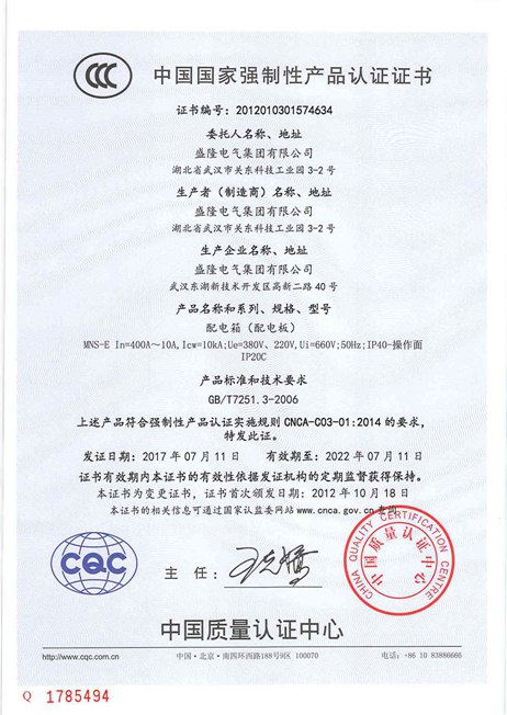低壓成套CCC證書